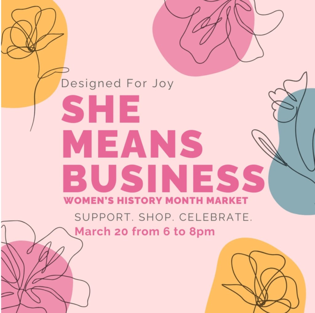 Designed For Joy hosts a free event celebrating women with vendors, giveaways, and raffles. The event is on March 20th from 6-8 pm at the Designed For Joy Studio.